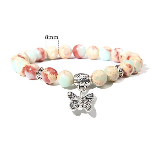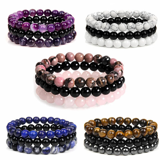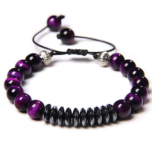 Natural stone bracelets use agate, jade, tiger's eye commonly seen. Each stone picked for specific chakra energy held within. Amethyst chakra helps crown center spirit connection work done. Rose quartz chakra opens heart center for love energy felt.