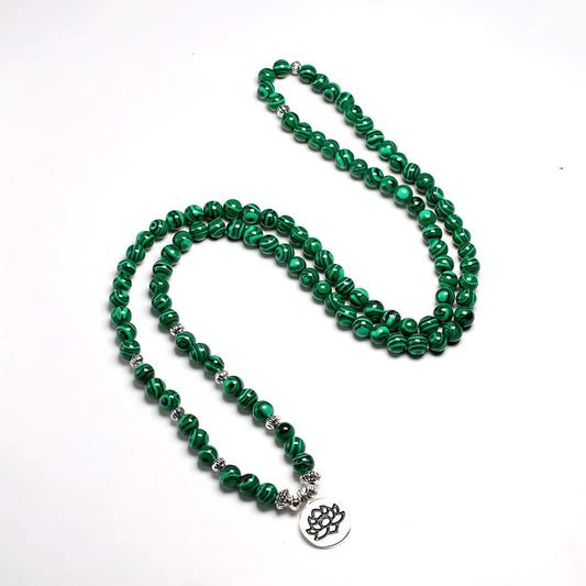 Chakra prayer beads usually have 108 beads for sacred counting. Wood beads chakra offer light option for long wearing during ceremonies. Silver charm finish goes with earthy tones of natural beads. Buddha face or elephant charms add spirit symbol presence.