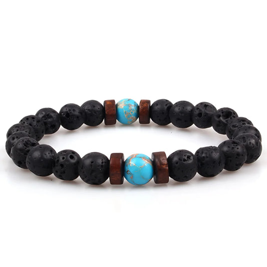 Wood bead bracelets made from peach wood or sandalwood types. Wood gives earthy grounding energy for root chakra balance. Stone bracelets offer varied crystal energy used for work. Stones for chakras picked based on color matching system.