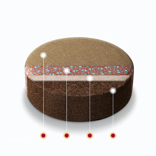 Seated meditation needs hip lift to protect spine. Most folks sit 20-60 minutes without moving. Hard floors hurt knees and ankles fast. Round cushions lift hips 6-15cm above floor. This keeps spine straight during long sits. Square mats cushion floor under knees and ankles.