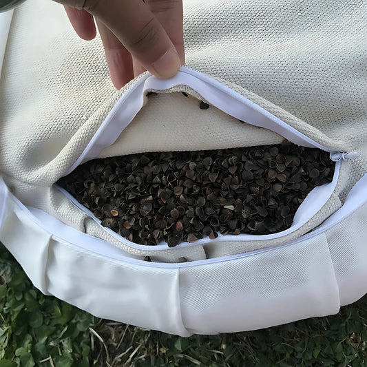 Buckwheat fills can be refreshed by sunlight exposure sometimes. Spread hulls in sun for 2-3 hours quarterly. This dries moisture and freshens natural smell nicely. Cotton and kapok fills maintain loft through regular use.