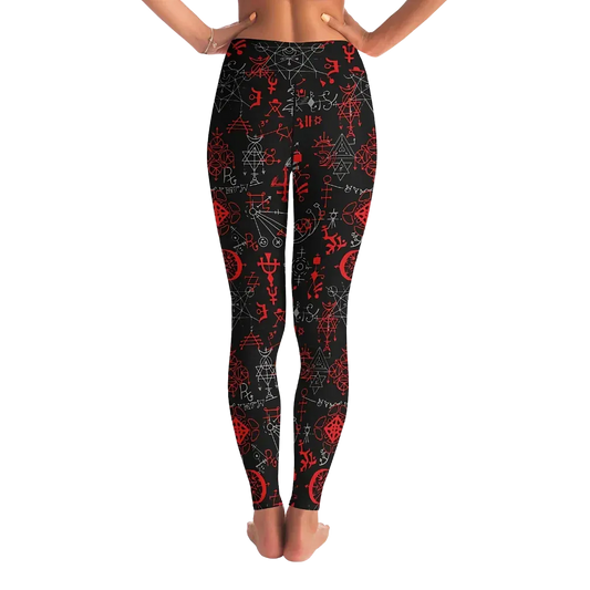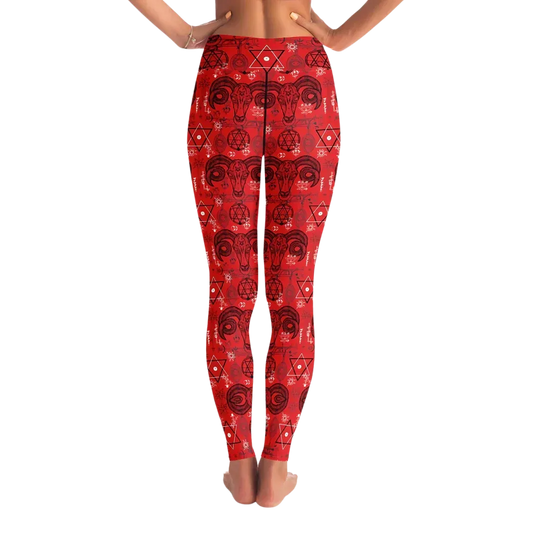Mystic Geometry Red Yoga Leggings With Occult Design