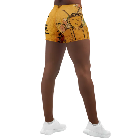 Buddha Blossom Women Yoga Shorts With Sacred Motifs