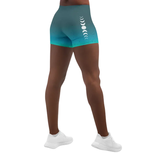 Moon Phase Gradient Shorts For Yoga In Teal Blue