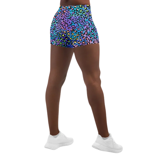 Neon Yoga Shorts With Vibrant Leopard Print Energy