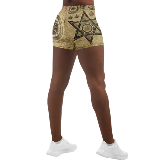 Patterned Yoga Shorts With Celestial Alchemy Design