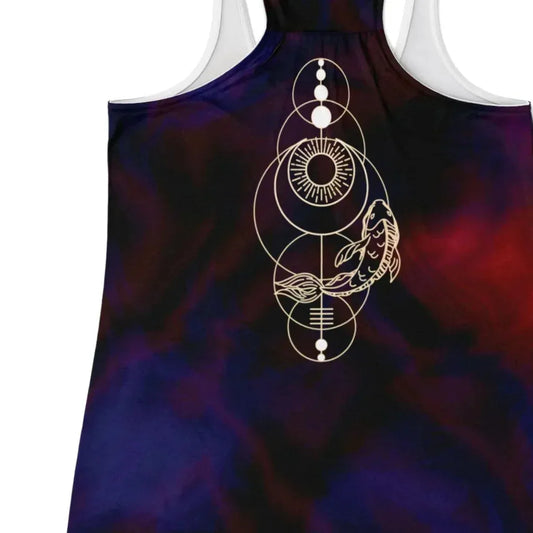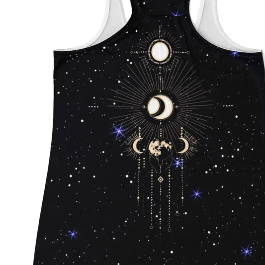 Tank Racerback styles fuse freedom and flow with celestial prints and breathable comfort.