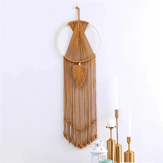 Boho Cotton Hanging Wall Hangings With Leaf Design