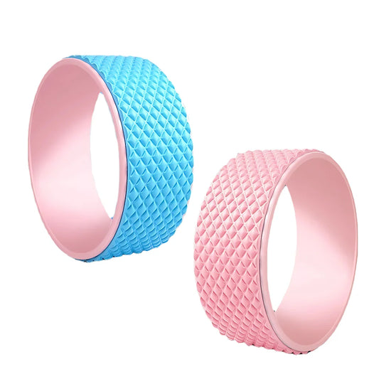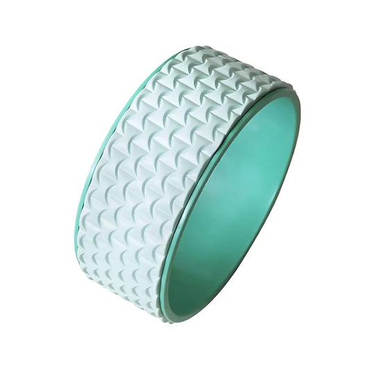 Yoga roller wheel combines stretching with gentle massage benefits offered. 3D textured surface mimics deep tissue work relieving tension. Built with ABS core and TPE outer layer for durability. Supports up to 1000 lbs offering confidence for all body types. Lightweight design travels easily between home and studio practice.